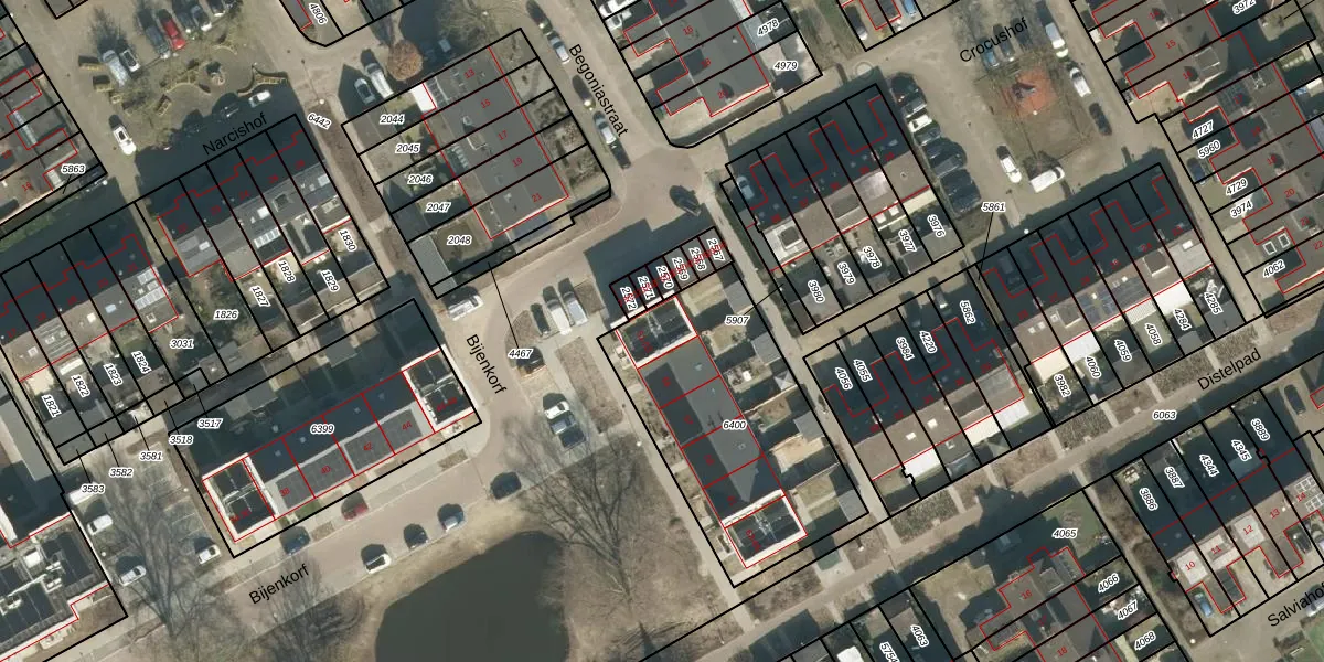 Het perceel waarop Bijenkorf 51 staat heeft een oppervlakte van 1000 m². Dit is een zeer groot perceel. De perceeloppervlakte wordt geregistreerd door het Kadaster. Gedetailleerde informatie over de maten van dit perceel kunt u vinden in het rapport Kadastrale kaart met maatvoering van Bijenkorf 51.