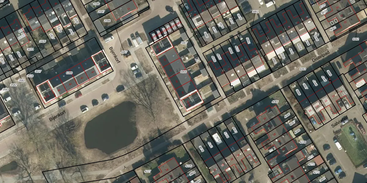 Bijenkorf 61 is gelegen op kadastraal perceel SDL00H6400. Deze kadastrale aanduiding is uniek en wordt gebruikt door het Kadaster om eigendomsrechten en andere zakelijke rechten vast te leggen. Het perceel maakt onderdeel uit van de kadastrale gemeente Schijndel.