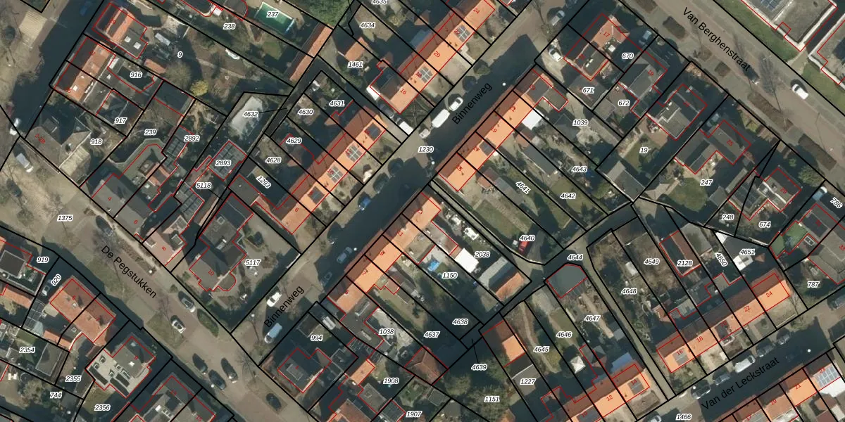 Het perceel waarop Binnenweg 13 staat heeft een oppervlakte van 313 m². Dit is een groot perceel. De perceeloppervlakte wordt geregistreerd door het Kadaster. Gedetailleerde informatie over de maten van dit perceel kunt u vinden in het rapport Kadastrale kaart met maatvoering van Binnenweg 13.