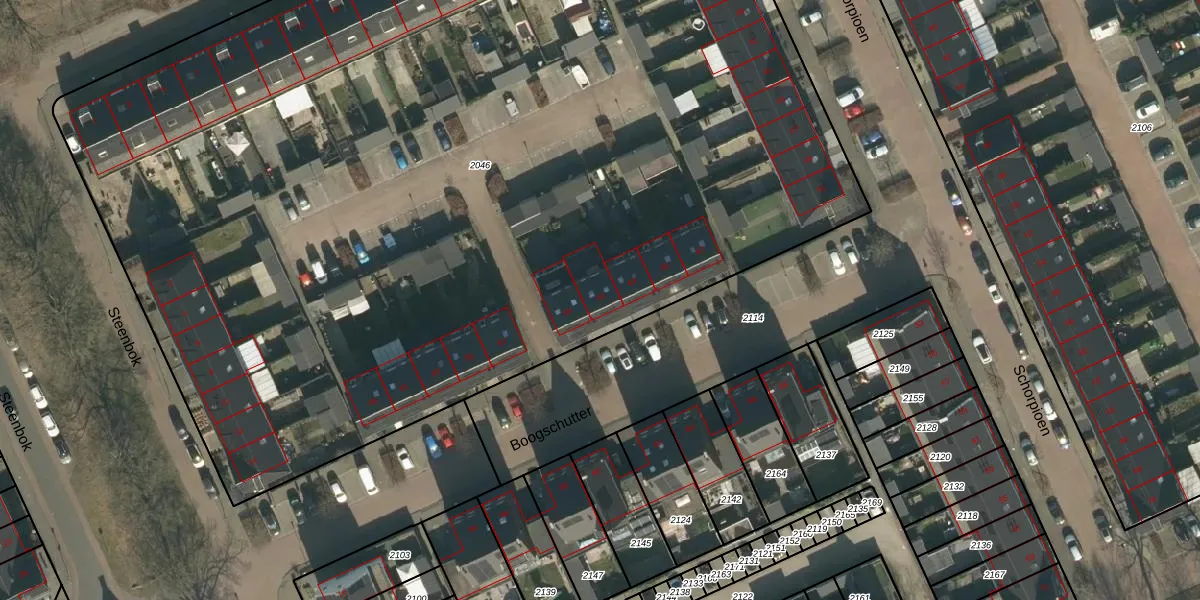 Het perceel waarop Boogschutter 61 staat heeft een oppervlakte van 8665 m². Dit is een zeer groot perceel. De perceeloppervlakte wordt geregistreerd door het Kadaster. Gedetailleerde informatie over de maten van dit perceel kunt u vinden in het rapport Kadastrale kaart met maatvoering van Boogschutter 61.