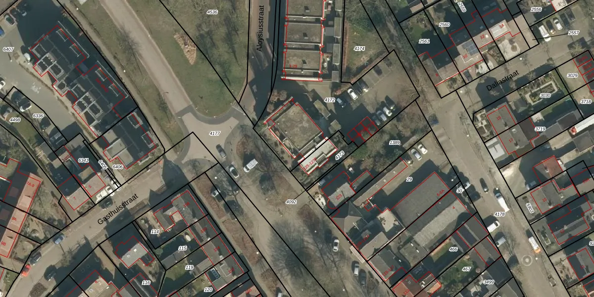 Het adres ligt op het perceel SDL00-H-4172, dat zich in de kadastrale gemeente Schijndel bevindt. Het perceel is kleiner dan gemiddeld in Schijndel. Het perceel is 2106 m² groot, terwijl het gemiddelde ligt op 2926,65 m². Het grootste perceel in de kadastrale gemeente is 41,5 ha. Het kleinste perceel heeft een oppervlakte van 0 m². Op het perceel liggen in totaal 24 adressen. De laatste wijziging in het de Basisregistratie Kadaster (BRK) was op 06-03-2007.