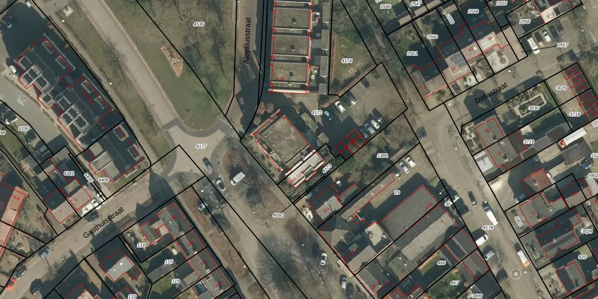 Het adres ligt op het perceel SDL00-H-4172, dat zich in de kadastrale gemeente Schijndel bevindt. Het perceel is kleiner dan gemiddeld in Schijndel. Het perceel is 2106 m² groot, terwijl het gemiddelde ligt op 2926,65 m². Het grootste perceel in de kadastrale gemeente is 41,5 ha. Het kleinste perceel heeft een oppervlakte van 0 m². Er zijn 24 adressen aanwezig op het perceel. De huidige grenzen van het perceel zijn digitaal in de Basisregistratie Kadaster (BRK) geregistreerd op 06-03-2007.