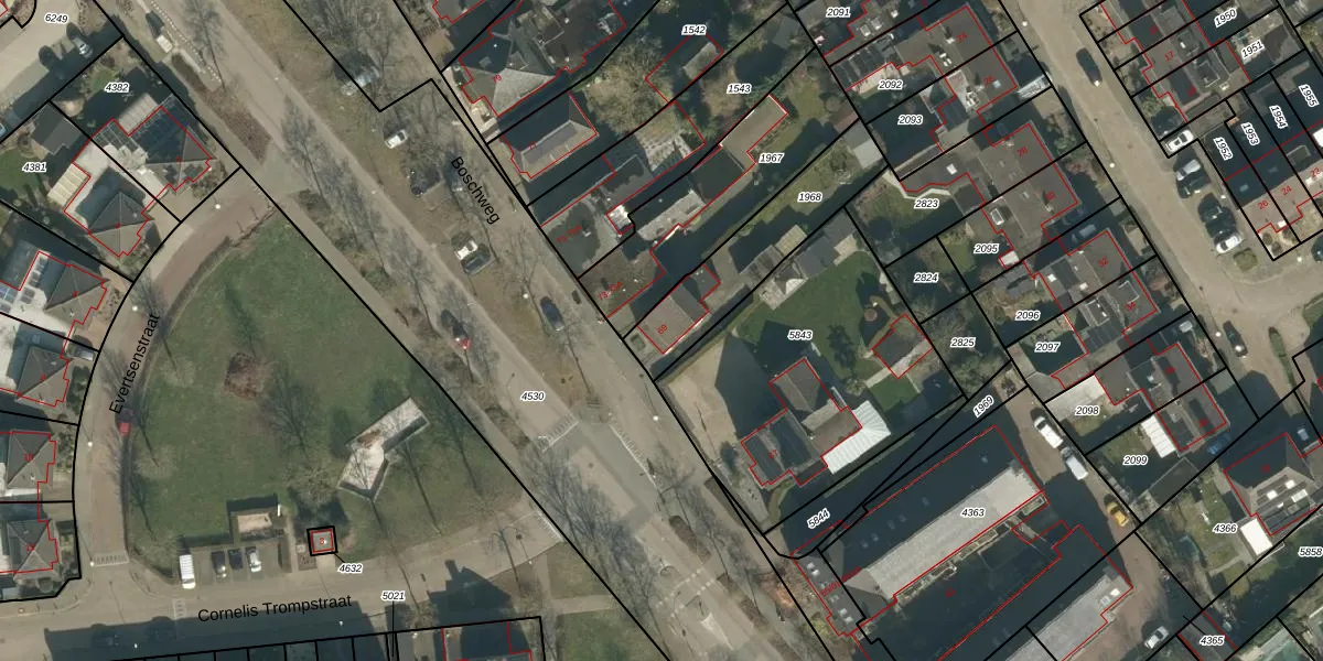 Het perceel waarop Boschweg 69 staat heeft een oppervlakte van 403 m². Dit is een groot perceel. De perceeloppervlakte wordt geregistreerd door het Kadaster. Gedetailleerde informatie over de maten van dit perceel kunt u vinden in het rapport Kadastrale kaart met maatvoering van Boschweg 69.