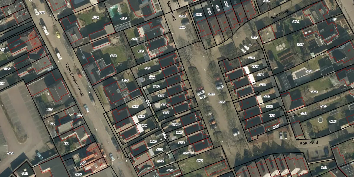 Het perceel waarop Boterweg 27 staat heeft een oppervlakte van 136 m². Dit is een middelgroot perceel. De perceeloppervlakte wordt geregistreerd door het Kadaster. Gedetailleerde informatie over de maten van dit perceel kunt u vinden in het rapport Kadastrale kaart met maatvoering van Boterweg 27.