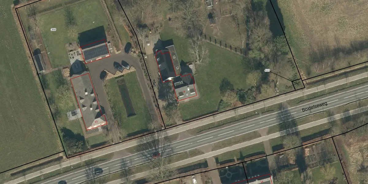 Boxtelseweg 9 is gelegen op kadastraal perceel SDL00L514. Deze kadastrale aanduiding is uniek en wordt gebruikt door het Kadaster om eigendomsrechten en andere zakelijke rechten vast te leggen. Het perceel maakt onderdeel uit van de kadastrale gemeente Schijndel.