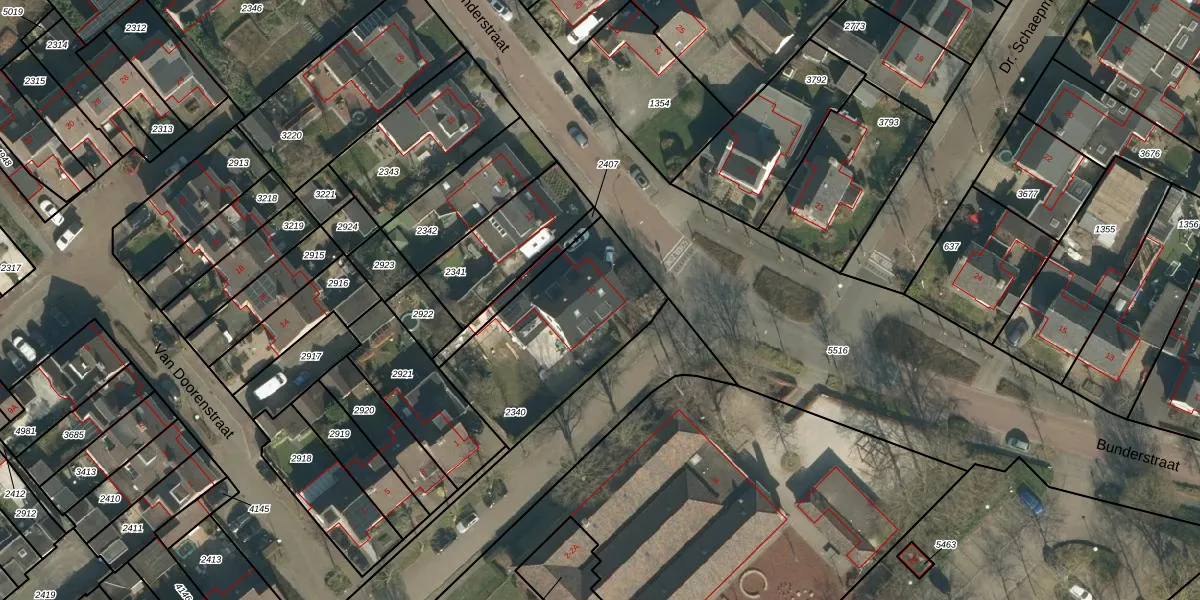 Bunderstraat 10 is gelegen op kadastraal perceel SDL00G2340. Deze kadastrale aanduiding is uniek en wordt gebruikt door het Kadaster om eigendomsrechten en andere zakelijke rechten vast te leggen. Het perceel maakt onderdeel uit van de kadastrale gemeente Schijndel.