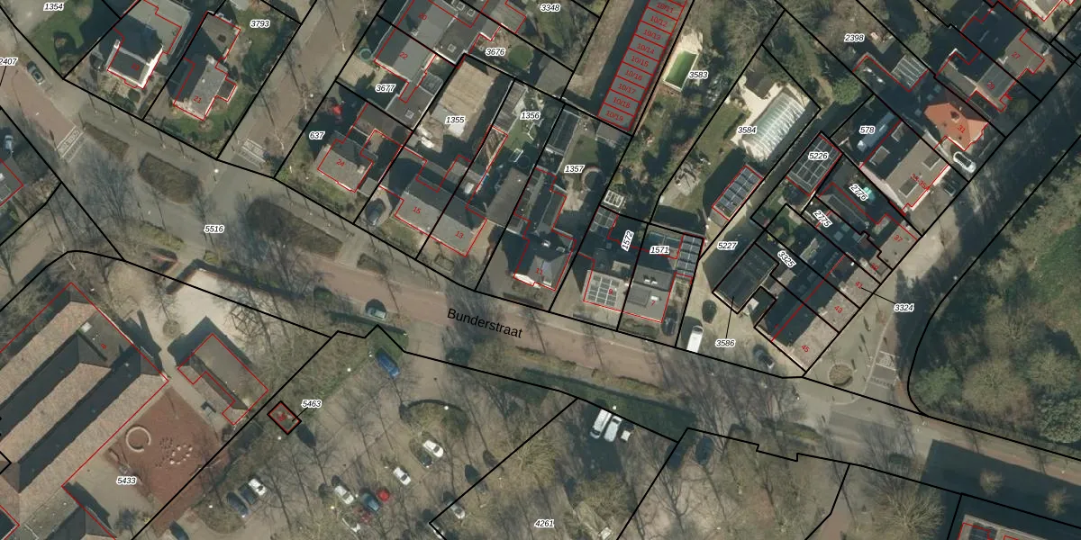 Het perceel waarop Bunderstraat 11 staat heeft een oppervlakte van 516 m². Dit is een groot perceel. De perceeloppervlakte wordt geregistreerd door het Kadaster. Gedetailleerde informatie over de maten van dit perceel kunt u vinden in het rapport Kadastrale kaart met maatvoering van Bunderstraat 11.