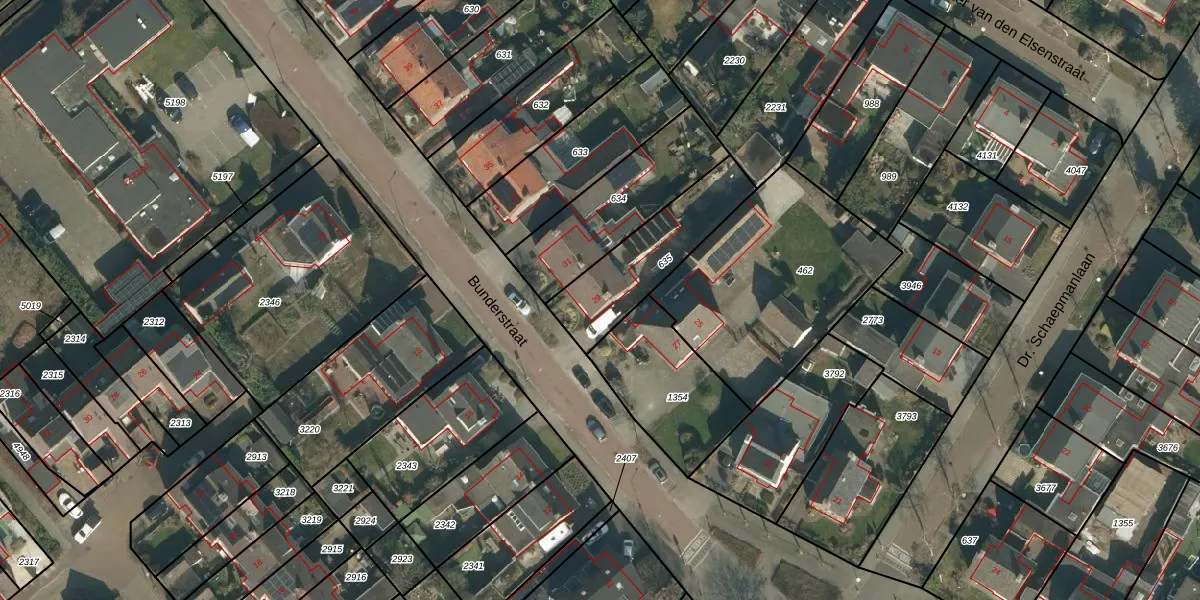 Het perceel waarop Bunderstraat 29 staat heeft een oppervlakte van 357 m². Dit is een groot perceel. De perceeloppervlakte wordt geregistreerd door het Kadaster. Gedetailleerde informatie over de maten van dit perceel kunt u vinden in het rapport Kadastrale kaart met maatvoering van Bunderstraat 29.