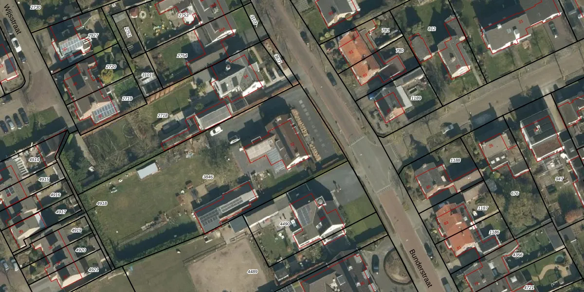 Het perceel waarop Bunderstraat 32 staat heeft een oppervlakte van 2660 m². Dit is een zeer groot perceel. De perceeloppervlakte wordt geregistreerd door het Kadaster. Gedetailleerde informatie over de maten van dit perceel kunt u vinden in het rapport Kadastrale kaart met maatvoering van Bunderstraat 32.