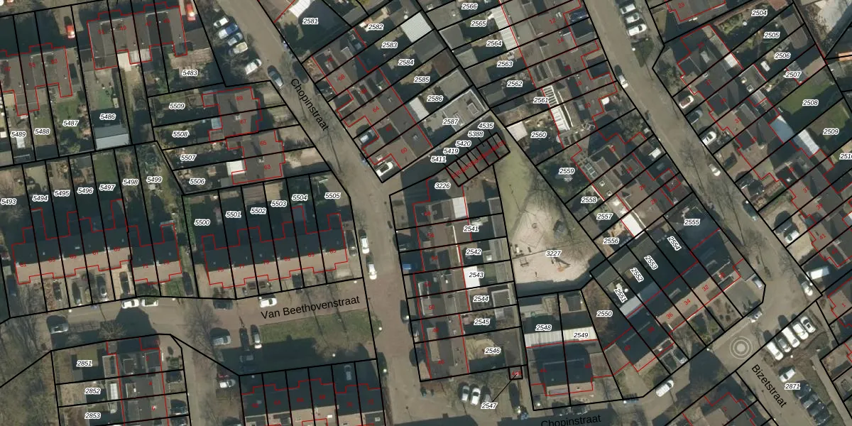 Het perceel waarop Chopinstraat 58 staat heeft een oppervlakte van 258 m². Dit is een middelgroot perceel. De perceeloppervlakte wordt geregistreerd door het Kadaster. Gedetailleerde informatie over de maten van dit perceel kunt u vinden in het rapport Kadastrale kaart met maatvoering van Chopinstraat 58.
