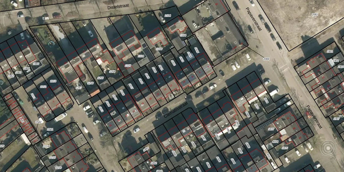 Gebruik de zoekbalk of klik op een perceel voor informatie over de adressen binnen dit perceel.