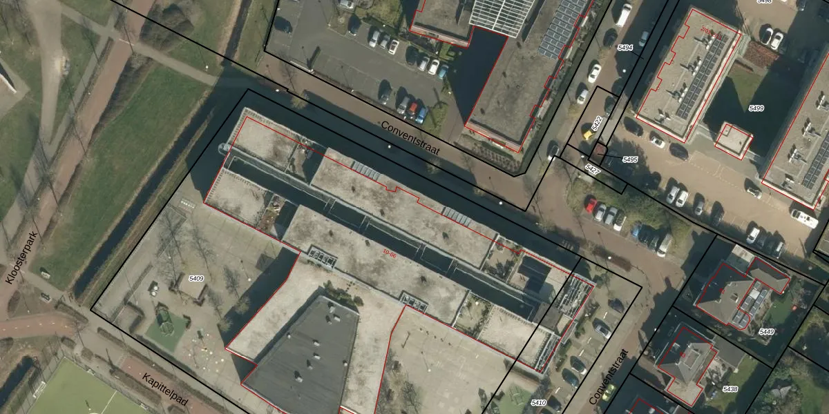 Het perceel waarop Conventstraat 10 staat heeft een oppervlakte van 6575 m². Dit is een zeer groot perceel. De perceeloppervlakte wordt geregistreerd door het Kadaster. Gedetailleerde informatie over de maten van dit perceel kunt u vinden in het rapport Kadastrale kaart met maatvoering van Conventstraat 10.