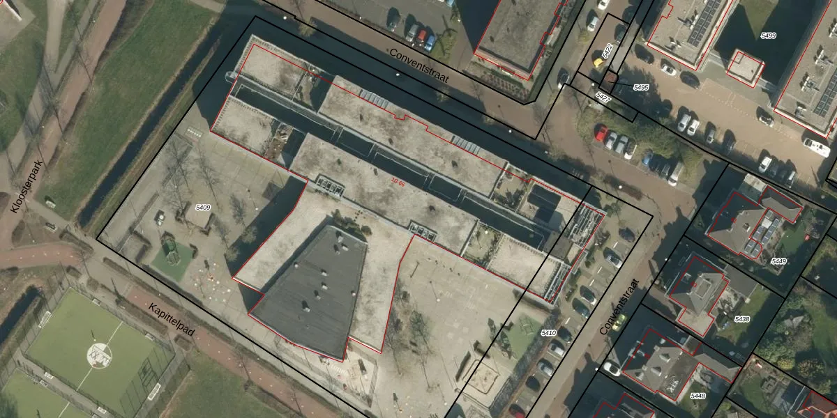 Het perceel waarop Conventstraat 44 staat heeft een oppervlakte van 6575 m². Dit is een zeer groot perceel. De perceeloppervlakte wordt geregistreerd door het Kadaster. Gedetailleerde informatie over de maten van dit perceel kunt u vinden in het rapport Kadastrale kaart met maatvoering van Conventstraat 44.