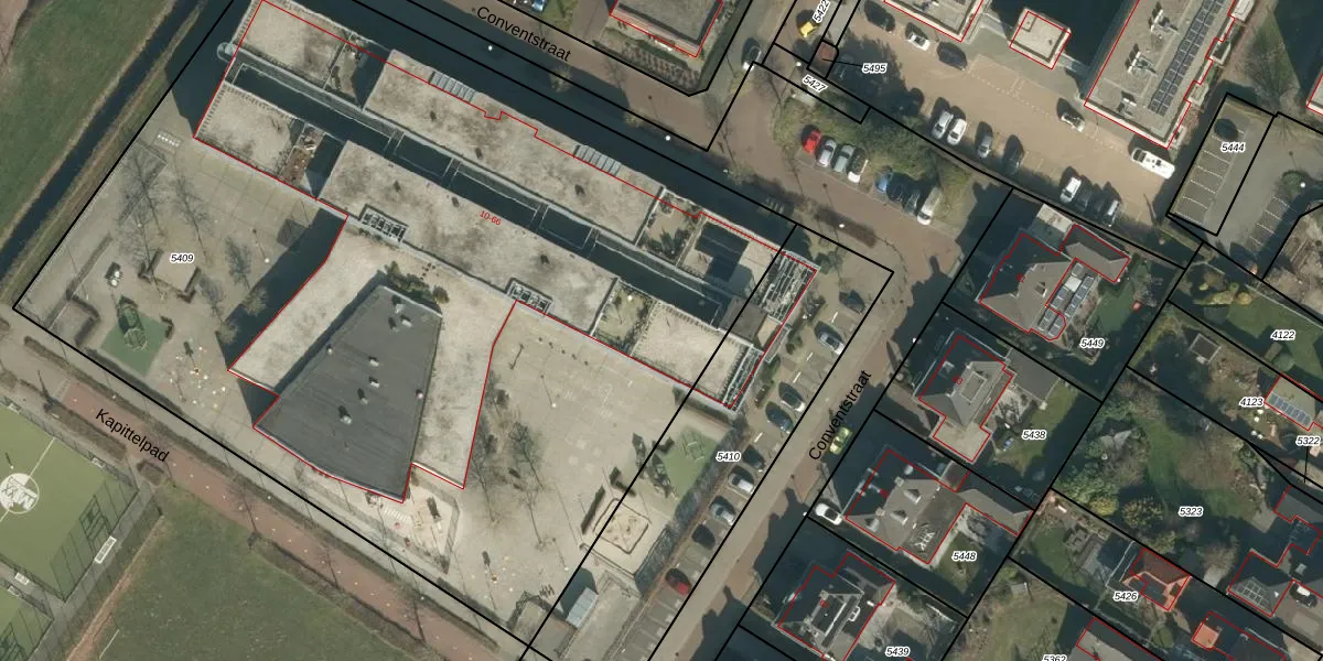 Het perceel waarop Conventstraat 48 staat heeft een oppervlakte van 6575 m². Dit is een zeer groot perceel. De perceeloppervlakte wordt geregistreerd door het Kadaster. Gedetailleerde informatie over de maten van dit perceel kunt u vinden in het rapport Kadastrale kaart met maatvoering van Conventstraat 48.