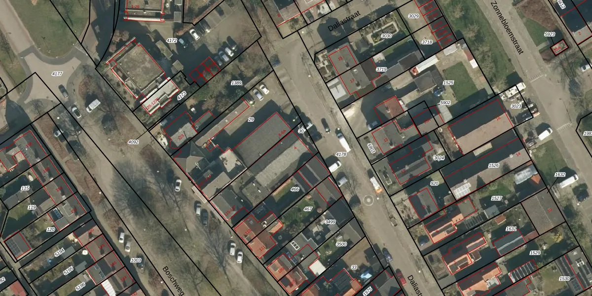 Daliastraat 4 is gelegen op kadastraal perceel SDL00H30. Deze kadastrale aanduiding is uniek en wordt gebruikt door het Kadaster om eigendomsrechten en andere zakelijke rechten vast te leggen. Het perceel maakt onderdeel uit van de kadastrale gemeente Schijndel.