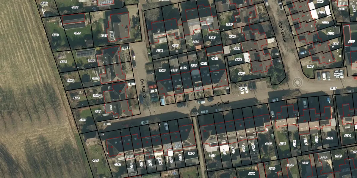 De Schild 10 is gelegen op kadastraal perceel SDL00H3005. Deze kadastrale aanduiding is uniek en wordt gebruikt door het Kadaster om eigendomsrechten en andere zakelijke rechten vast te leggen. Het perceel maakt onderdeel uit van de kadastrale gemeente Schijndel.