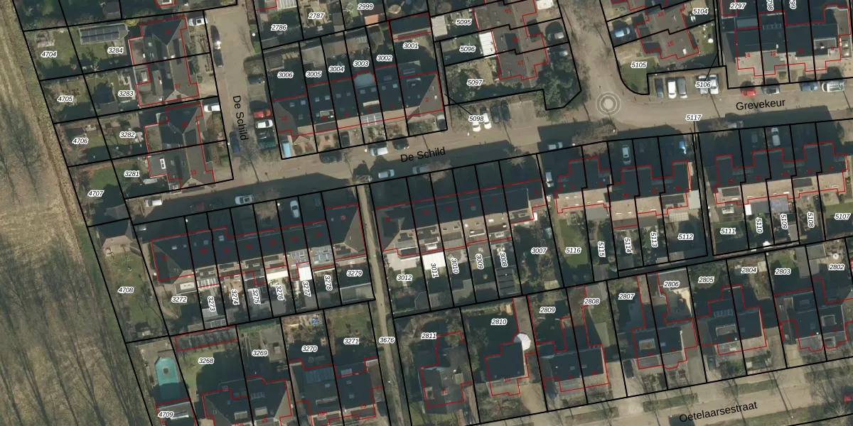 Het perceel waarop De Schild 13 staat heeft een oppervlakte van 174 m². Dit is een middelgroot perceel. De perceeloppervlakte wordt geregistreerd door het Kadaster. Gedetailleerde informatie over de maten van dit perceel kunt u vinden in het rapport Kadastrale kaart met maatvoering van De Schild 13.