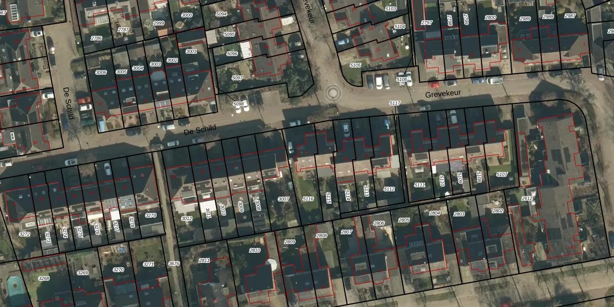 Gebruik de zoekbalk of klik op een perceel voor informatie over de adressen binnen dit perceel.