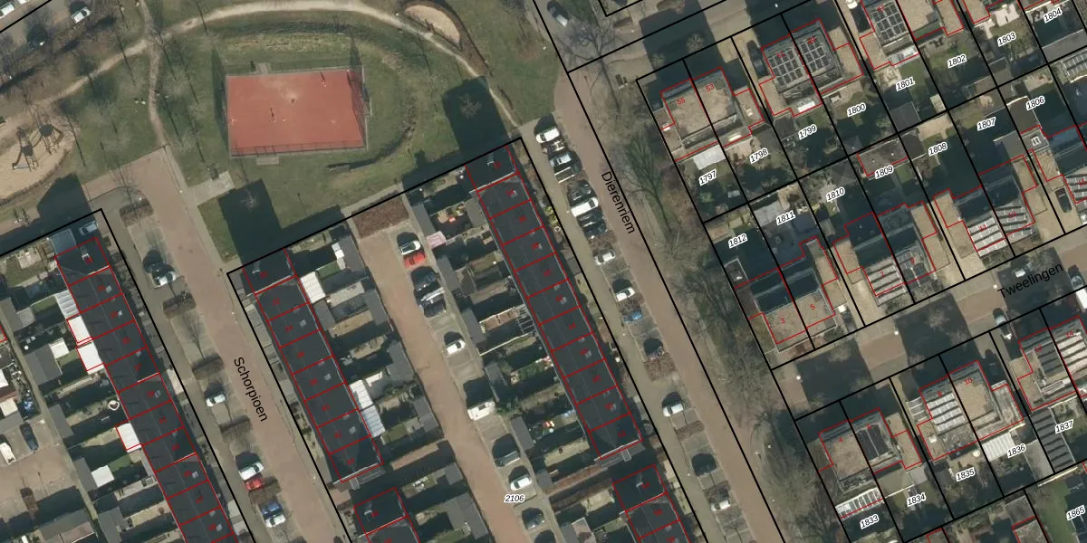 Het perceel waarop Dierenriem 40 staat heeft een oppervlakte van 7110 m². Dit is een zeer groot perceel. De perceeloppervlakte wordt geregistreerd door het Kadaster. Gedetailleerde informatie over de maten van dit perceel kunt u vinden in het rapport Kadastrale kaart met maatvoering van Dierenriem 40.