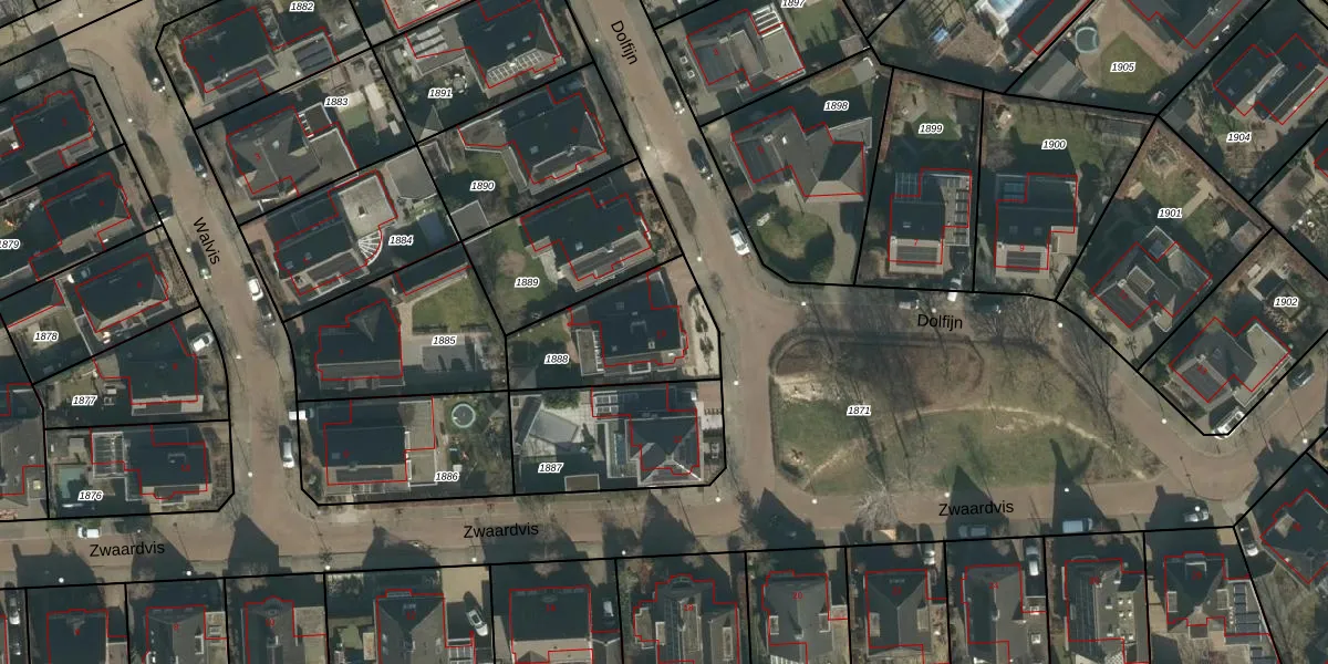 Het perceel waarop Dolfijn 10 staat heeft een oppervlakte van 438 m². Dit is een groot perceel. De perceeloppervlakte wordt geregistreerd door het Kadaster. Gedetailleerde informatie over de maten van dit perceel kunt u vinden in het rapport Kadastrale kaart met maatvoering van Dolfijn 10.