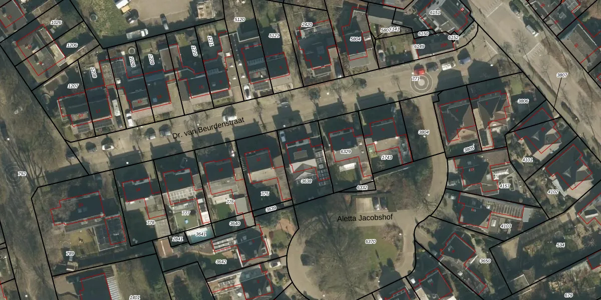 Het perceel waarop Dr. van Beurdenstraat 10 staat heeft een oppervlakte van 355 m². Dit is een groot perceel. De perceeloppervlakte wordt geregistreerd door het Kadaster. Gedetailleerde informatie over de maten van dit perceel kunt u vinden in het rapport Kadastrale kaart met maatvoering van Dr. van Beurdenstraat 10.