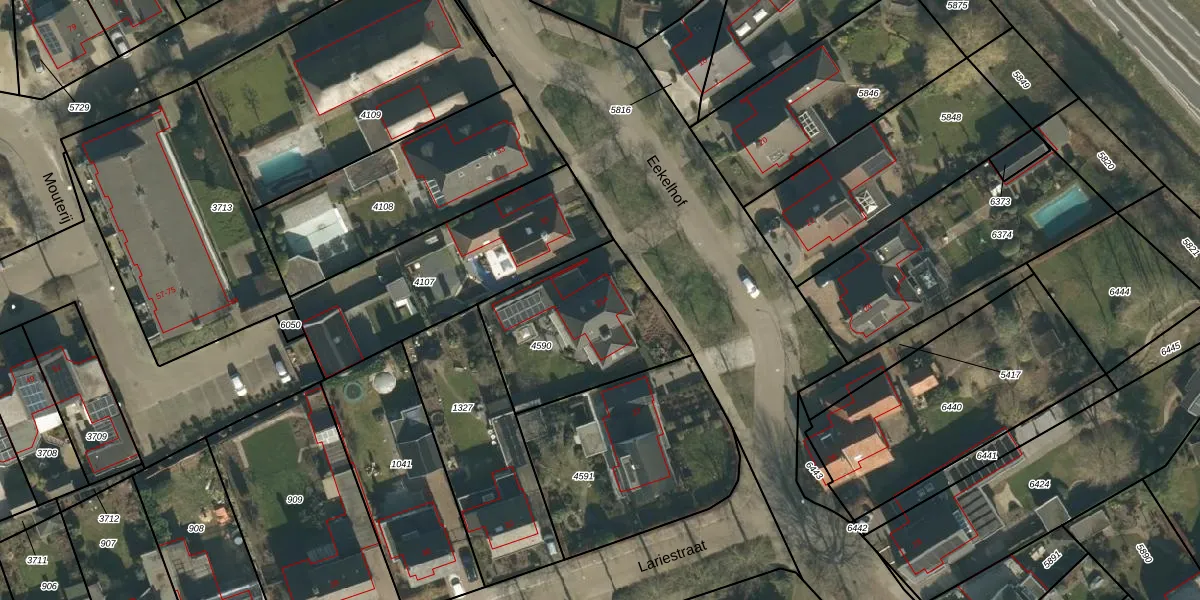 Het perceel waarop Eekelhof 35-A staat heeft een oppervlakte van 594 m². Dit is een groot perceel. De perceeloppervlakte wordt geregistreerd door het Kadaster. Gedetailleerde informatie over de maten van dit perceel kunt u vinden in het rapport Kadastrale kaart met maatvoering van Eekelhof 35-A.