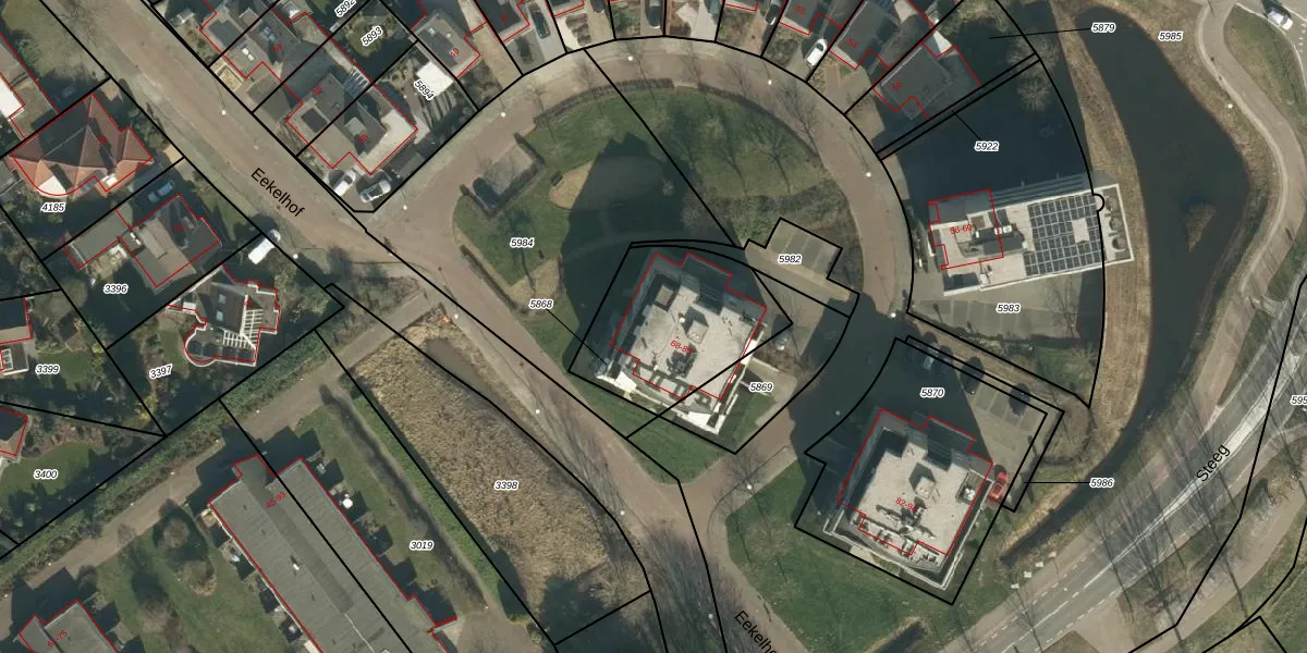 Het perceel waarop Eekelhof 74 staat heeft een oppervlakte van 547 m². Dit is een groot perceel. De perceeloppervlakte wordt geregistreerd door het Kadaster. Gedetailleerde informatie over de maten van dit perceel kunt u vinden in het rapport Kadastrale kaart met maatvoering van Eekelhof 74.