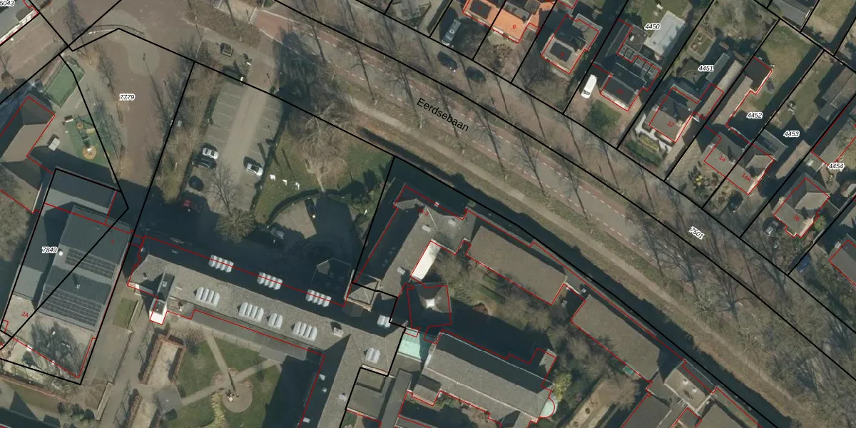 Het perceel waarop Eerdsebaan 1-B staat heeft een oppervlakte van 1,1 ha. Dit is een zeer groot perceel. De perceeloppervlakte wordt geregistreerd door het Kadaster. Gedetailleerde informatie over de maten van dit perceel kunt u vinden in het rapport Kadastrale kaart met maatvoering van Eerdsebaan 1-B.