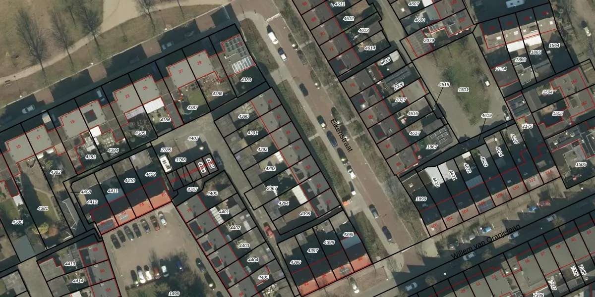 Gebruik de zoekbalk of klik op een perceel voor informatie over de adressen binnen dit perceel.