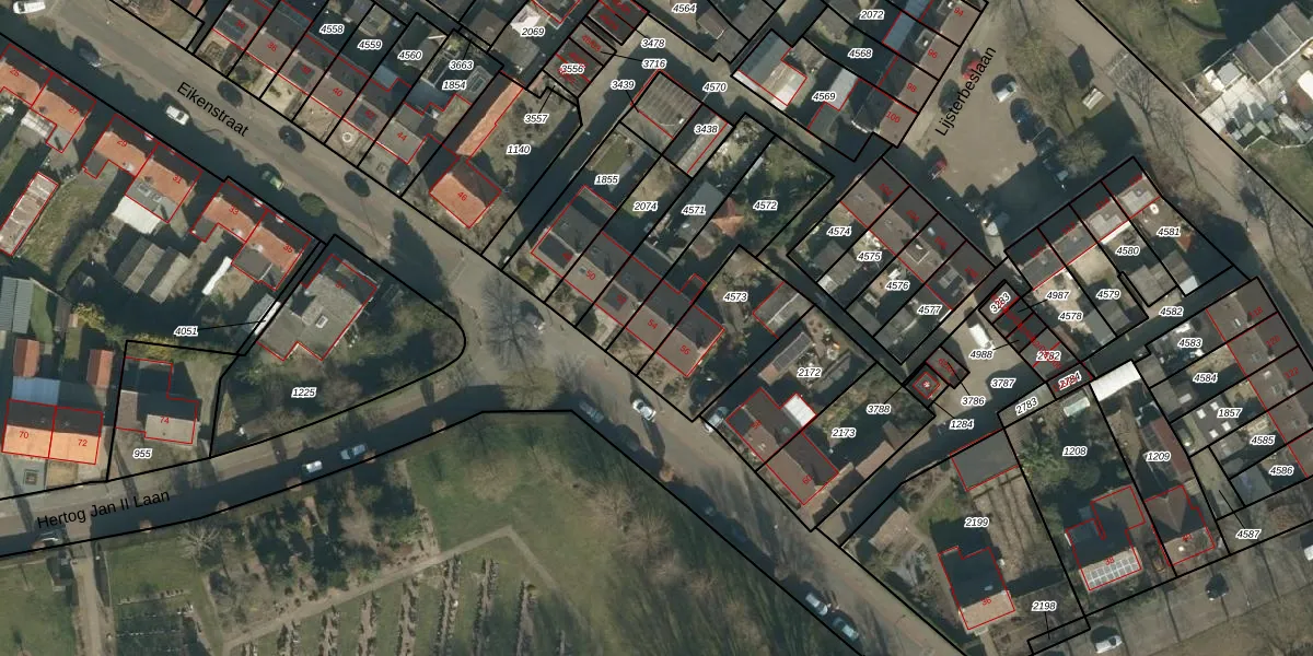 Eikenstraat 54 is gelegen op kadastraal perceel SDL00G4572. Deze kadastrale aanduiding is uniek en wordt gebruikt door het Kadaster om eigendomsrechten en andere zakelijke rechten vast te leggen. Het perceel maakt onderdeel uit van de kadastrale gemeente Schijndel.