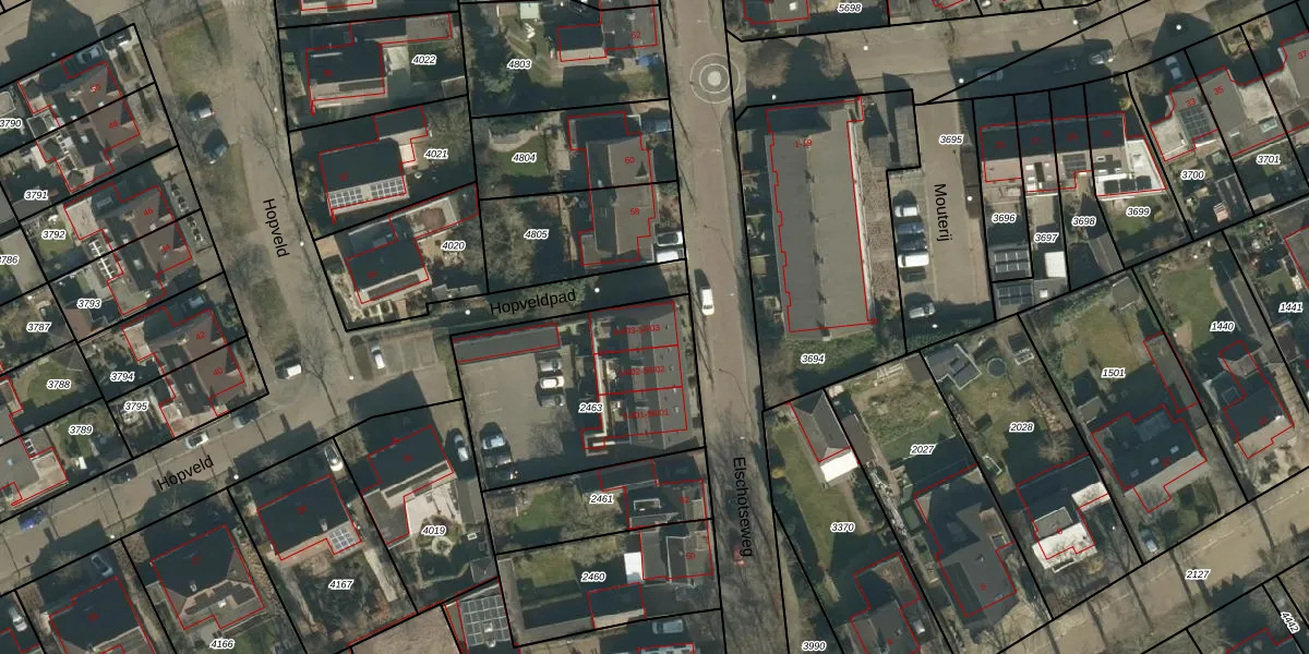 Elschotseweg 54-03 is gelegen op kadastraal perceel SDL00H2463. Deze kadastrale aanduiding is uniek en wordt gebruikt door het Kadaster om eigendomsrechten en andere zakelijke rechten vast te leggen. Het perceel maakt onderdeel uit van de kadastrale gemeente Schijndel.