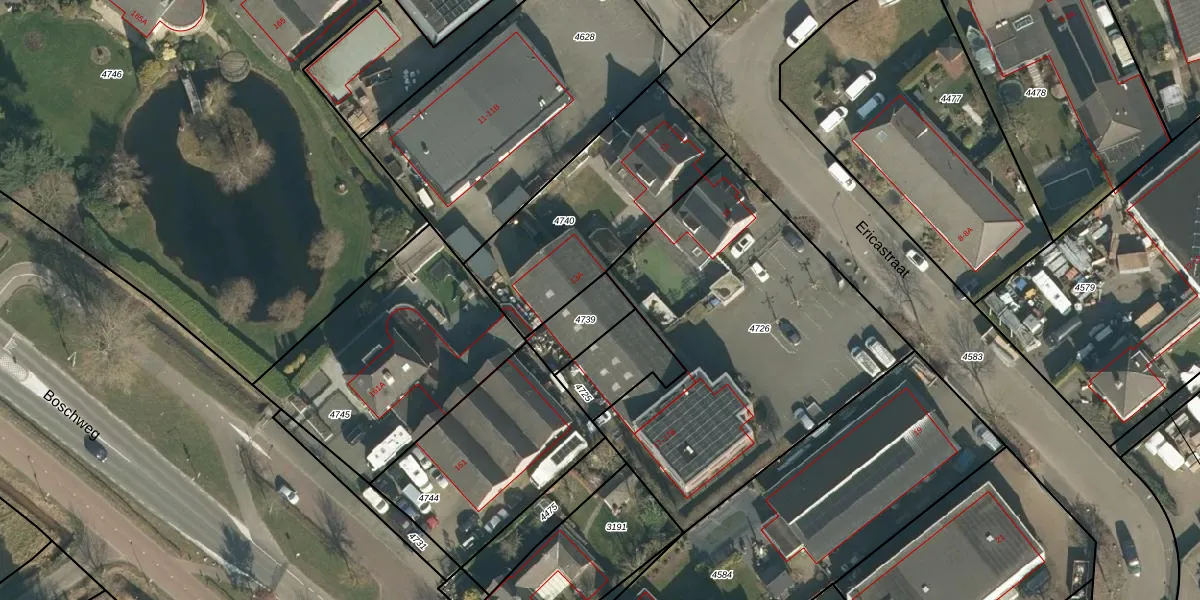 Ericastraat 13-A is gelegen op kadastraal perceel SDL00B4739. Deze kadastrale aanduiding is uniek en wordt gebruikt door het Kadaster om eigendomsrechten en andere zakelijke rechten vast te leggen. Het perceel maakt onderdeel uit van de kadastrale gemeente Schijndel.