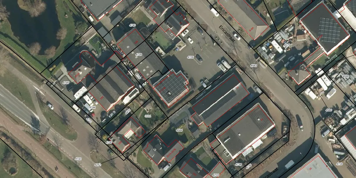 Het perceel waarop Ericastraat 17-B staat heeft een oppervlakte van 1716 m². Dit is een zeer groot perceel. De perceeloppervlakte wordt geregistreerd door het Kadaster. Gedetailleerde informatie over de maten van dit perceel kunt u vinden in het rapport Kadastrale kaart met maatvoering van Ericastraat 17-B.