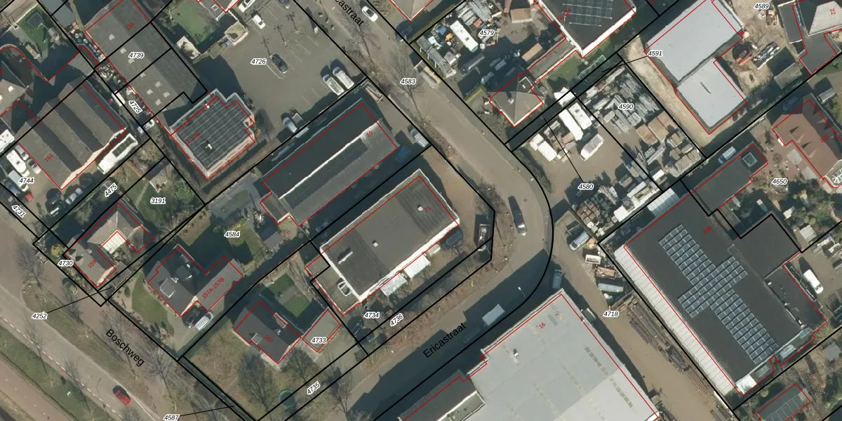 Ericastraat 21 is gelegen op kadastraal perceel SDL00B4734. Deze kadastrale aanduiding is uniek en wordt gebruikt door het Kadaster om eigendomsrechten en andere zakelijke rechten vast te leggen. Het perceel maakt onderdeel uit van de kadastrale gemeente Schijndel.