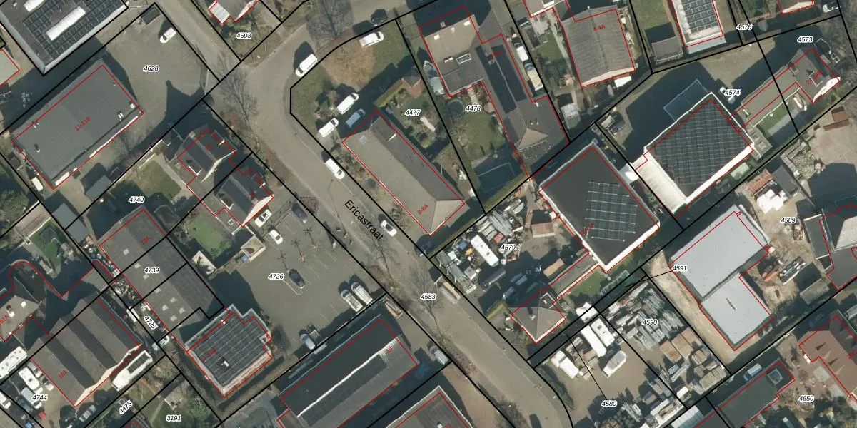 Ericastraat 8 is gelegen op kadastraal perceel SDL00B4477. Deze kadastrale aanduiding is uniek en wordt gebruikt door het Kadaster om eigendomsrechten en andere zakelijke rechten vast te leggen. Het perceel maakt onderdeel uit van de kadastrale gemeente Schijndel.