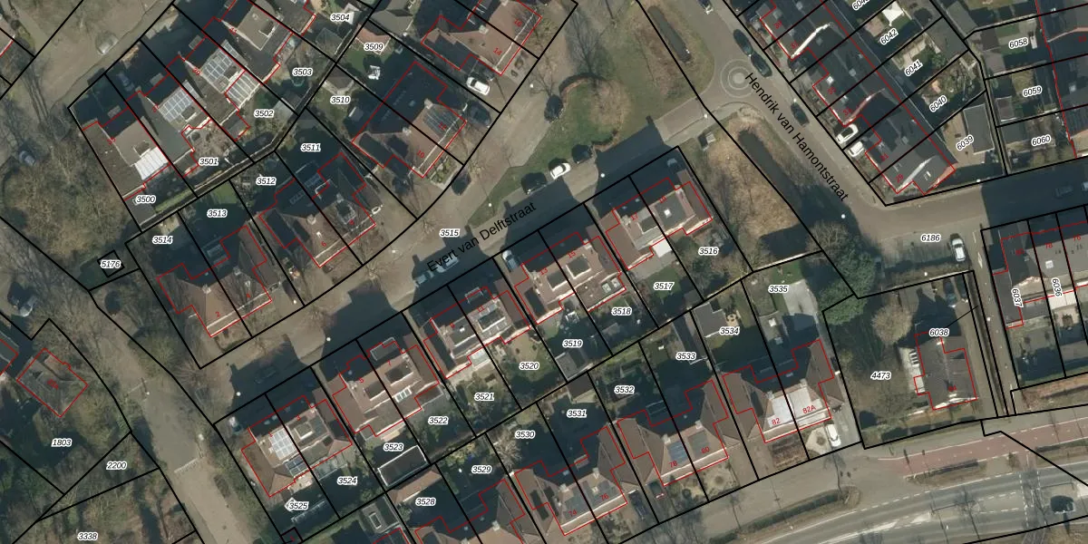 Evert van Delftstraat 13 is gelegen op kadastraal perceel SDL00G3519. Deze kadastrale aanduiding is uniek en wordt gebruikt door het Kadaster om eigendomsrechten en andere zakelijke rechten vast te leggen. Het perceel maakt onderdeel uit van de kadastrale gemeente Schijndel.