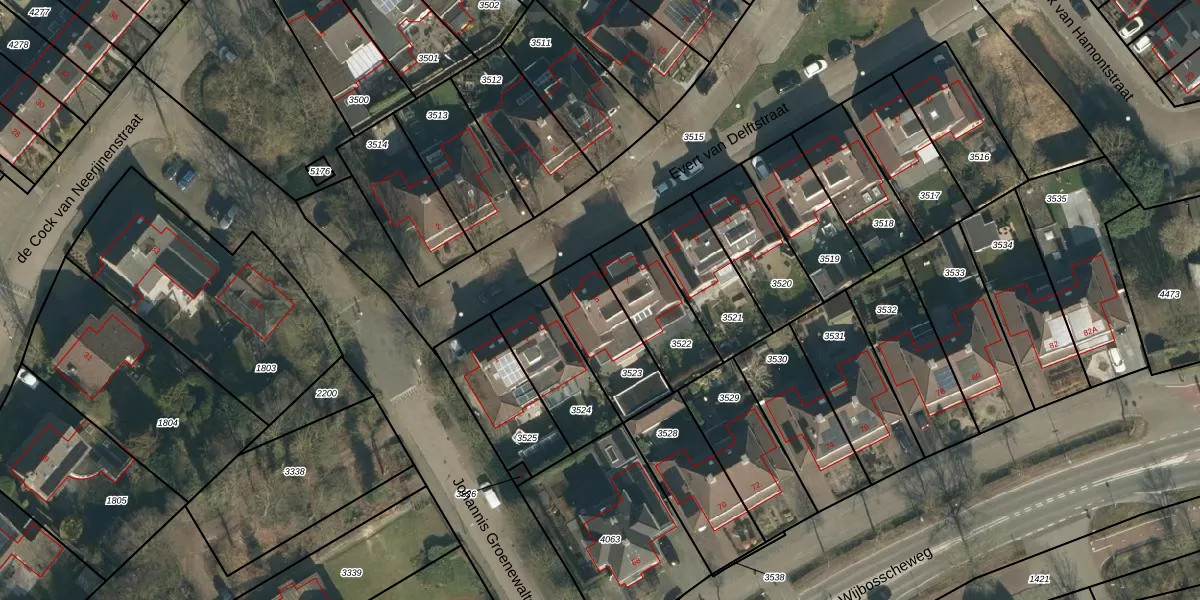 Evert van Delftstraat 5 is gelegen op kadastraal perceel SDL00G3523. Deze kadastrale aanduiding is uniek en wordt gebruikt door het Kadaster om eigendomsrechten en andere zakelijke rechten vast te leggen. Het perceel maakt onderdeel uit van de kadastrale gemeente Schijndel.