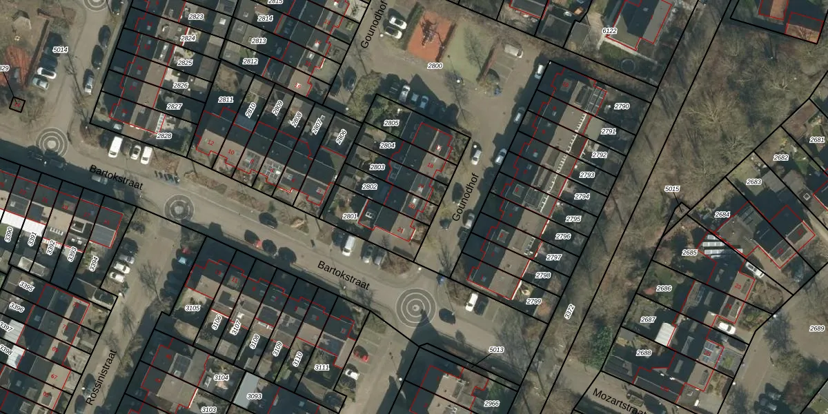 Gounodhof 20 is gelegen op kadastraal perceel SDL00G2802. Deze kadastrale aanduiding is uniek en wordt gebruikt door het Kadaster om eigendomsrechten en andere zakelijke rechten vast te leggen. Het perceel maakt onderdeel uit van de kadastrale gemeente Schijndel.