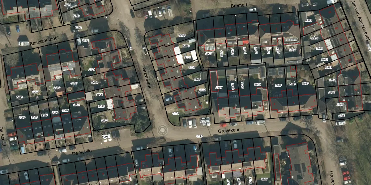 Grevekeur 18 is gelegen op kadastraal perceel SDL00H5104. Deze kadastrale aanduiding is uniek en wordt gebruikt door het Kadaster om eigendomsrechten en andere zakelijke rechten vast te leggen. Het perceel maakt onderdeel uit van de kadastrale gemeente Schijndel.