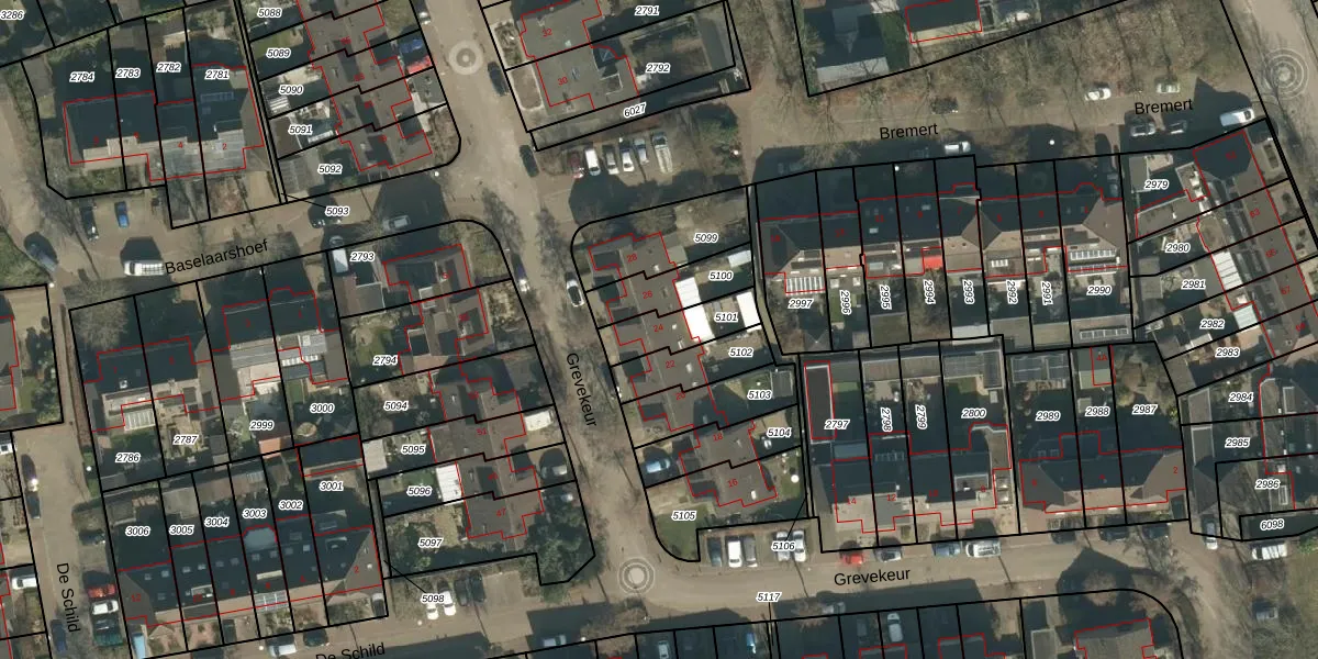 Grevekeur 24 is gelegen op kadastraal perceel SDL00H5101. Deze kadastrale aanduiding is uniek en wordt gebruikt door het Kadaster om eigendomsrechten en andere zakelijke rechten vast te leggen. Het perceel maakt onderdeel uit van de kadastrale gemeente Schijndel.