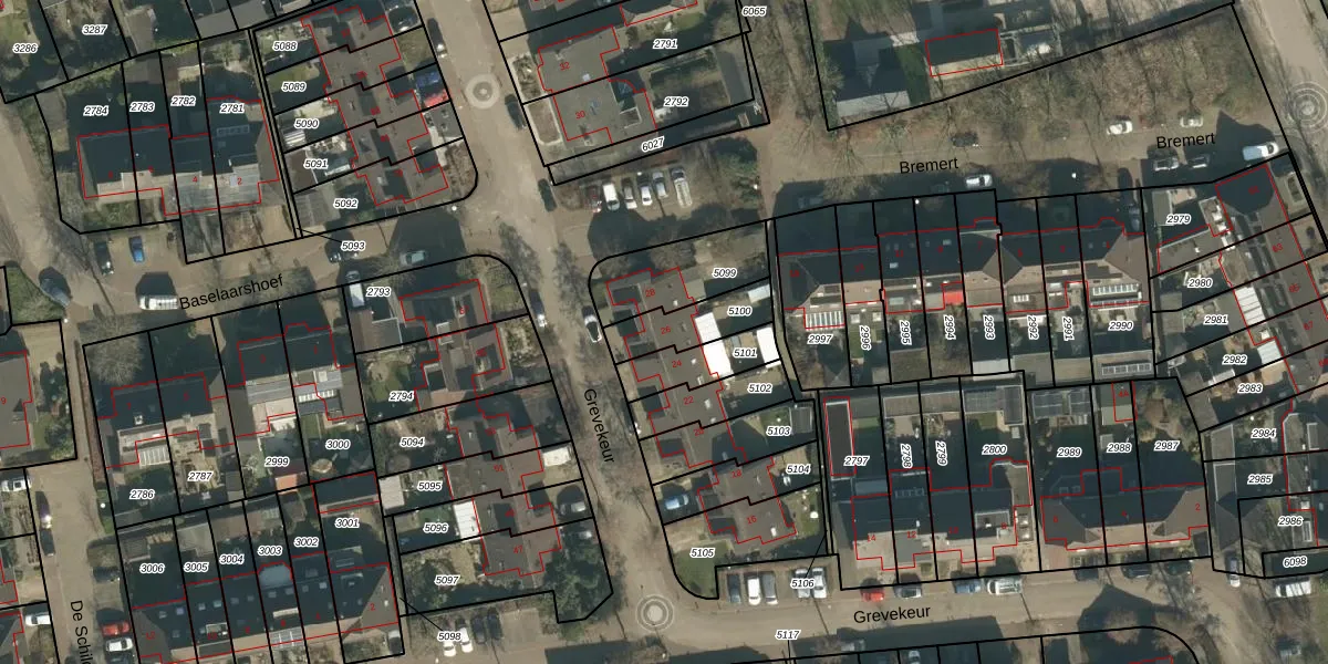 Grevekeur 26 is gelegen op kadastraal perceel SDL00H5100. Deze kadastrale aanduiding is uniek en wordt gebruikt door het Kadaster om eigendomsrechten en andere zakelijke rechten vast te leggen. Het perceel maakt onderdeel uit van de kadastrale gemeente Schijndel.