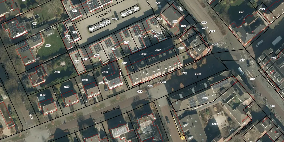 Het perceel waarop Groeneweg 21 staat heeft een oppervlakte van 539 m². Dit is een groot perceel. De perceeloppervlakte wordt geregistreerd door het Kadaster. Gedetailleerde informatie over de maten van dit perceel kunt u vinden in het rapport Kadastrale kaart met maatvoering van Groeneweg 21.