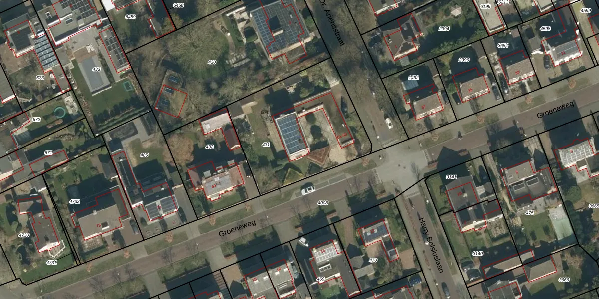 Het perceel waarop Groeneweg 63 staat heeft een oppervlakte van 1335 m². Dit is een zeer groot perceel. De perceeloppervlakte wordt geregistreerd door het Kadaster. Gedetailleerde informatie over de maten van dit perceel kunt u vinden in het rapport Kadastrale kaart met maatvoering van Groeneweg 63.