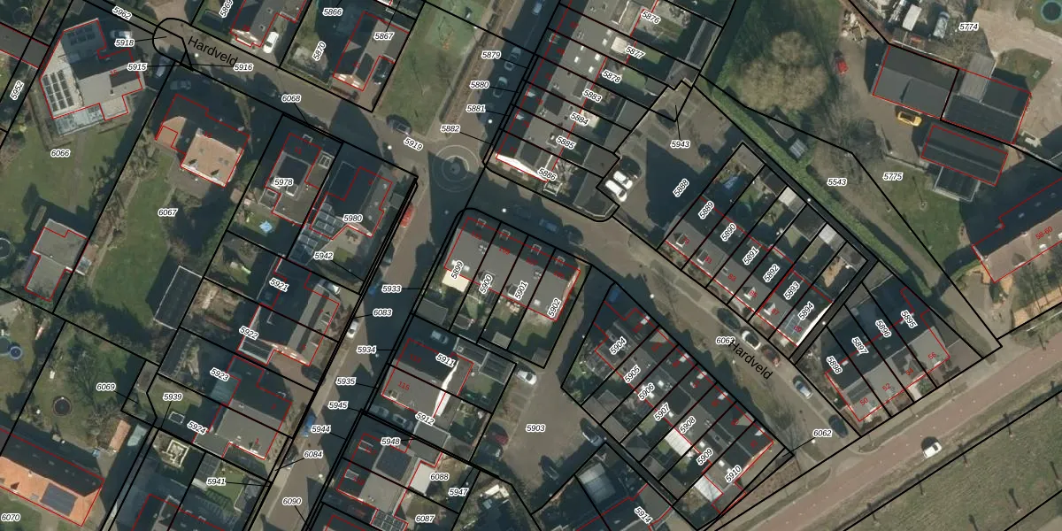 Het perceel waarop Hardveld 107 staat heeft een oppervlakte van 122 m². Dit is een middelgroot perceel. De perceeloppervlakte wordt geregistreerd door het Kadaster. Gedetailleerde informatie over de maten van dit perceel kunt u vinden in het rapport Kadastrale kaart met maatvoering van Hardveld 107.