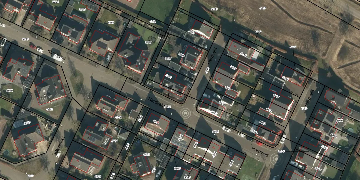Het perceel waarop Hardveld 33 staat heeft een oppervlakte van 238 m². Dit is een middelgroot perceel. De perceeloppervlakte wordt geregistreerd door het Kadaster. Gedetailleerde informatie over de maten van dit perceel kunt u vinden in het rapport Kadastrale kaart met maatvoering van Hardveld 33.