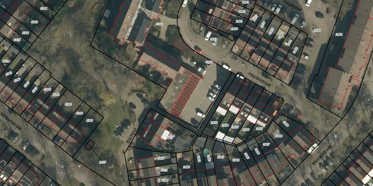 Het perceel waarop Haydnstraat 100-04 staat heeft een oppervlakte van 4024 m². Dit is een zeer groot perceel. De perceeloppervlakte wordt geregistreerd door het Kadaster. Gedetailleerde informatie over de maten van dit perceel kunt u vinden in het rapport Kadastrale kaart met maatvoering van Haydnstraat 100-04.