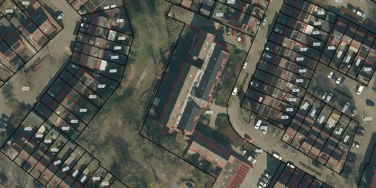 Het perceel waarop Haydnstraat 28 staat heeft een oppervlakte van 4024 m². Dit is een zeer groot perceel. De perceeloppervlakte wordt geregistreerd door het Kadaster. Gedetailleerde informatie over de maten van dit perceel kunt u vinden in het rapport Kadastrale kaart met maatvoering van Haydnstraat 28.