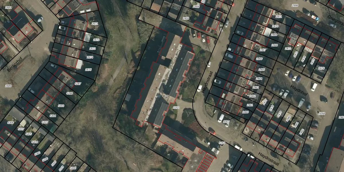 Het perceel waarop Haydnstraat 38 staat heeft een oppervlakte van 4024 m². Dit is een zeer groot perceel. De perceeloppervlakte wordt geregistreerd door het Kadaster. Gedetailleerde informatie over de maten van dit perceel kunt u vinden in het rapport Kadastrale kaart met maatvoering van Haydnstraat 38.