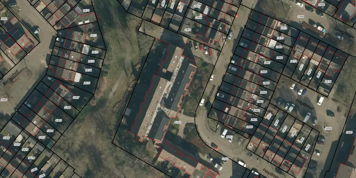 Het perceel waarop Haydnstraat 40 staat heeft een oppervlakte van 4024 m². Dit is een zeer groot perceel. De perceeloppervlakte wordt geregistreerd door het Kadaster. Gedetailleerde informatie over de maten van dit perceel kunt u vinden in het rapport Kadastrale kaart met maatvoering van Haydnstraat 40.