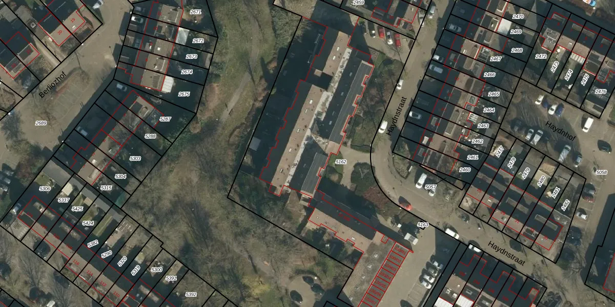 Het perceel waarop Haydnstraat 88 staat heeft een oppervlakte van 4024 m². Dit is een zeer groot perceel. De perceeloppervlakte wordt geregistreerd door het Kadaster. Gedetailleerde informatie over de maten van dit perceel kunt u vinden in het rapport Kadastrale kaart met maatvoering van Haydnstraat 88.